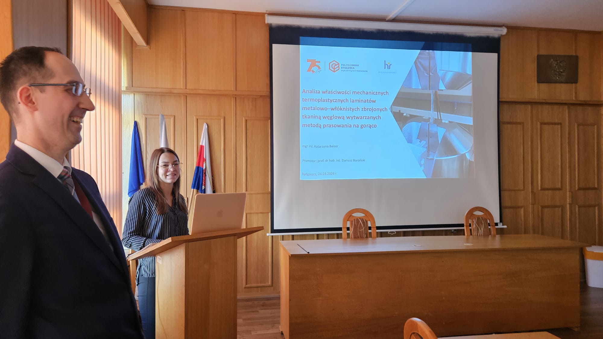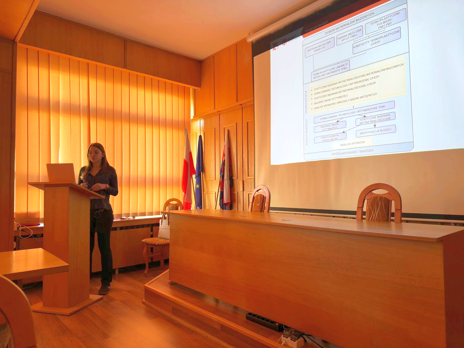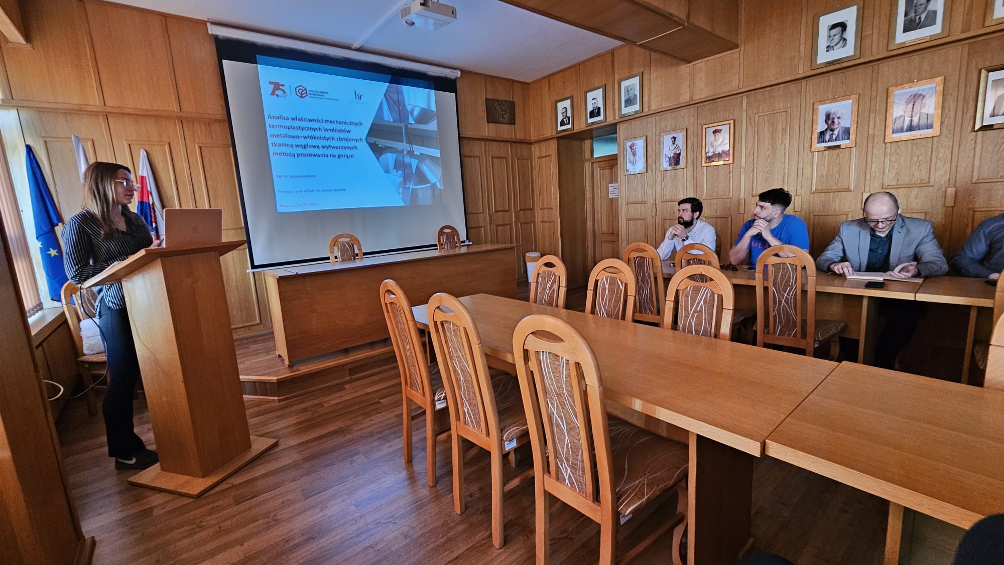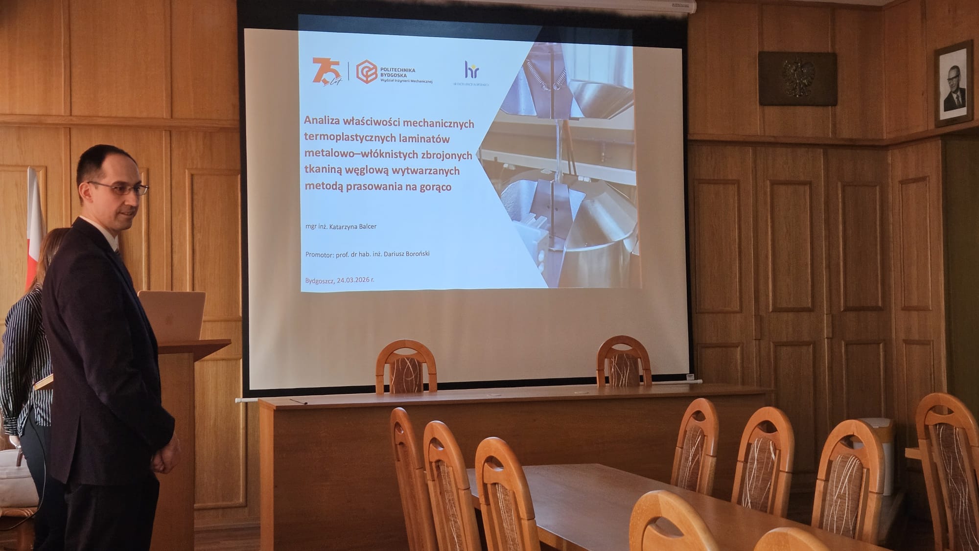 W dniu 19 marca 2026 r. odbyło się zebranie naukowe zorganizowane przez Oddział Bydgoski PTMTS. Podczas zebrania prelegentka, mgr inż. Katarzyna Balcer, pracująca na Wydziale Inżynierii Mechanicznej Politechniki Bydgoskiej w Katedrze Mechaniki i Metod Komputerowych, wygłosiła referat pt. "Analiza właściwości mechanicznych termoplastycznych laminatów metalowo-włóknistych zbrojonych tkaniną węglową wytwarzanych metodą prasowania na gorąco". Uczestniczyło w nim 11 osób – członków i sympatyków PTMTS. Po prezentacji odbyła się ciekawa dyskusja dotycząca prezentowanego zagadnienia.